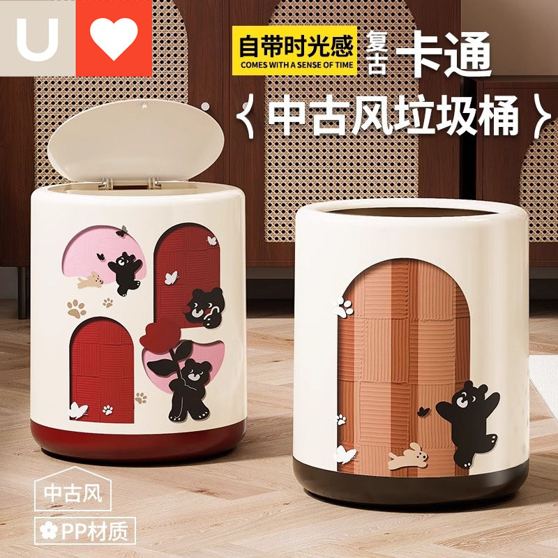 Younai ゴミ箱 家庭用 高見え リビングルーム クリエイティブ 大容量 リビングルーム ベッドルーム 蓋付き 中世スタイル ペーパーバスケット