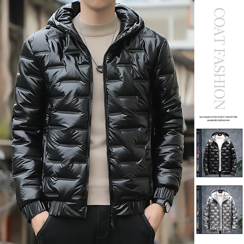 国境を越えた新しい冬の男性PU綿入れの上着と帽子の明るい綿の服の男性のファッションの流行の青年の短い綿の服のコート