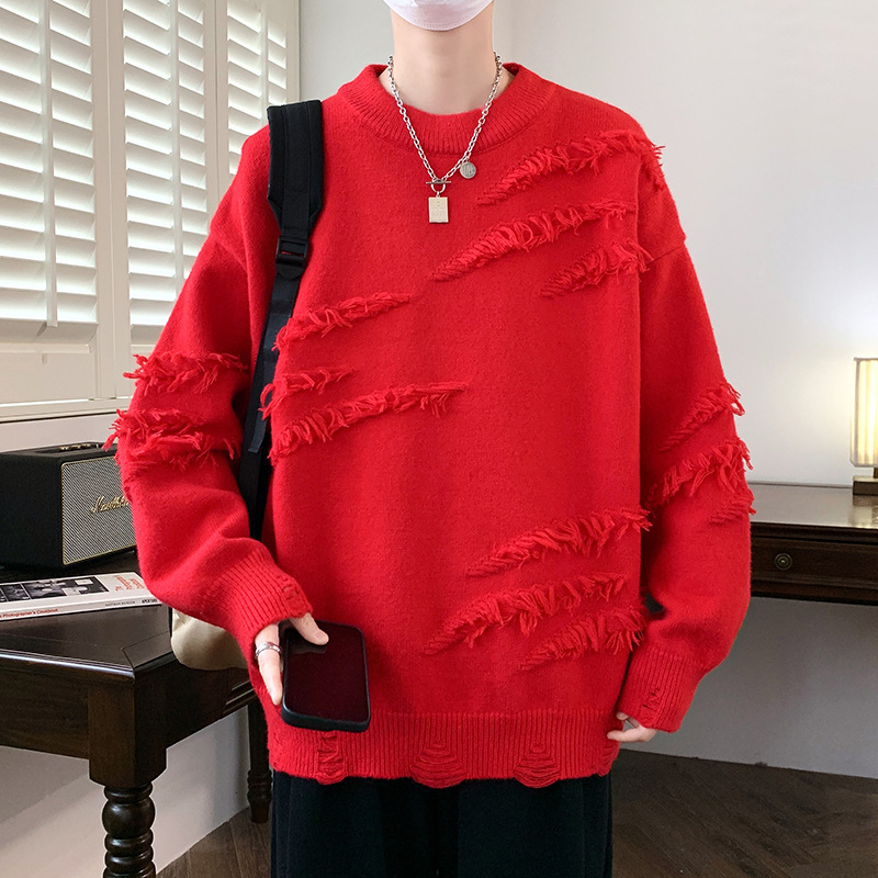 穴を割った丸首のセーターの男性の秋冬のタイプの怠惰な風は編みます。