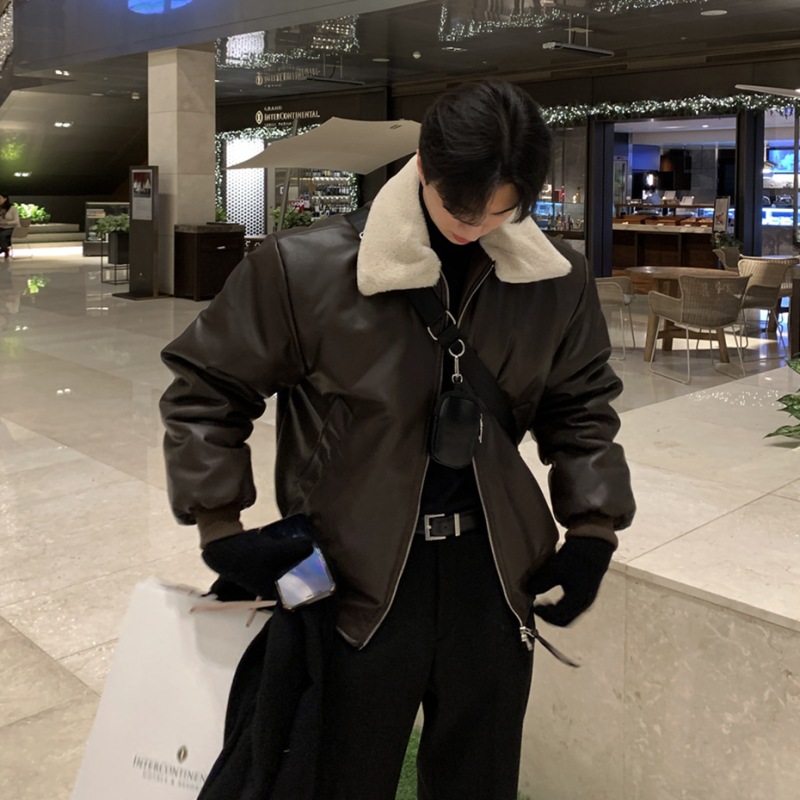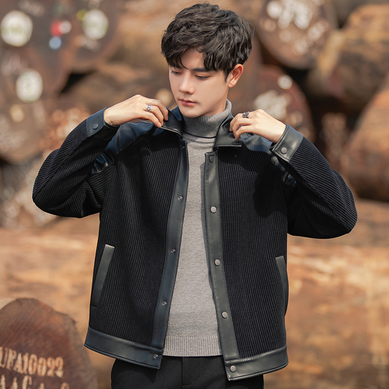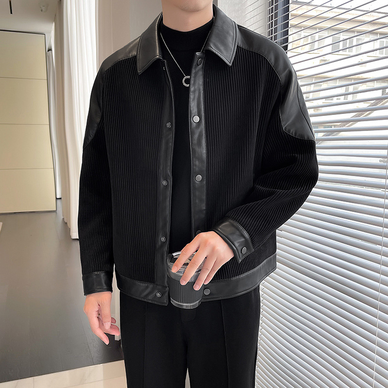 秋のPUは皮の服の男性の襟をつなぎ合わせてゆったりしています。