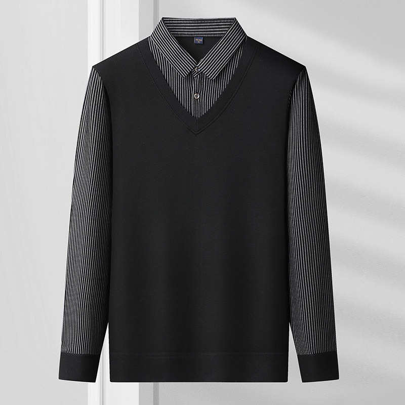 クロスボーダーの新型秋冬シャツの襟の偽の2つのシャツの男性の長袖の外国貿易の大きいサイズのストライプのファッションは紳士服を打ちます。