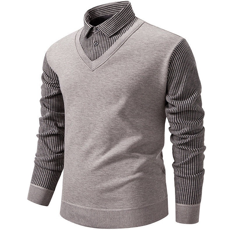 国境を越えた新型男性偽二枚セーター男性ゆるいストレートシャツ男性セータープルオーバー男性ニット