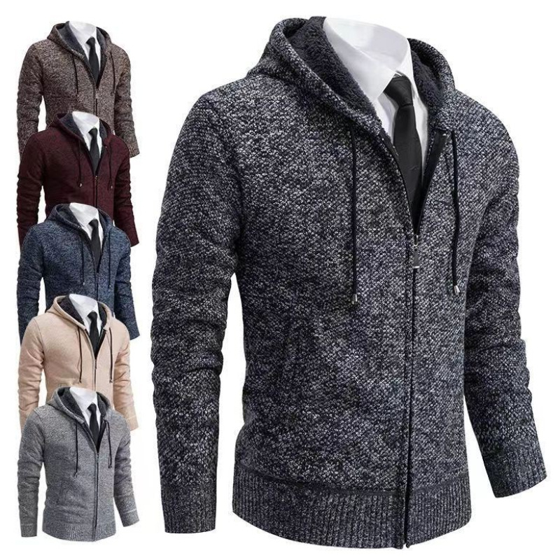 クロスボーダーの新型男性式秋冬の厚い大きいサイズのニットの男性のセーターのファスナーのカーディガンの帽子のジャケットの男性のコート
