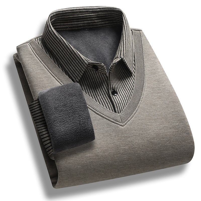 クロスボーダー2024カジュアル男性秋冬ベルベットシャツ長袖偽二枚ニット男の色合わせセーター