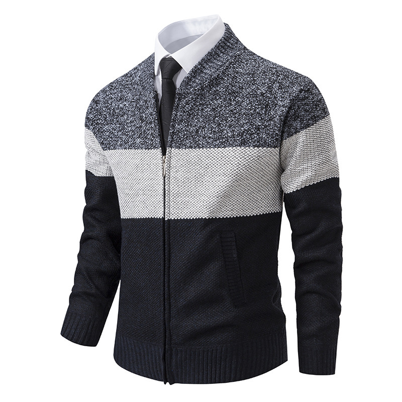 外国貿易の新型秋冬メンズニットセーターは、色合わせのジッパージャケットを厚くして、男性の上着のカーディガンを立てます。