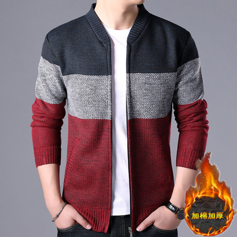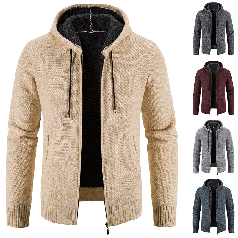 国境を越えた対外貿易男性カーディガンとベルベットのジッパーと帽子のセーターと秋冬男性の父親が保温コートを着ている