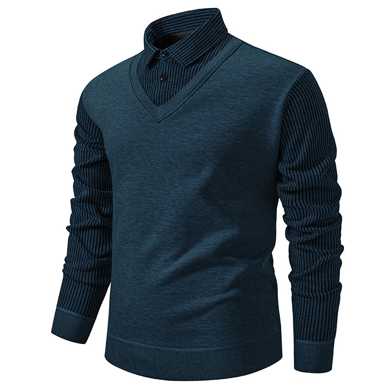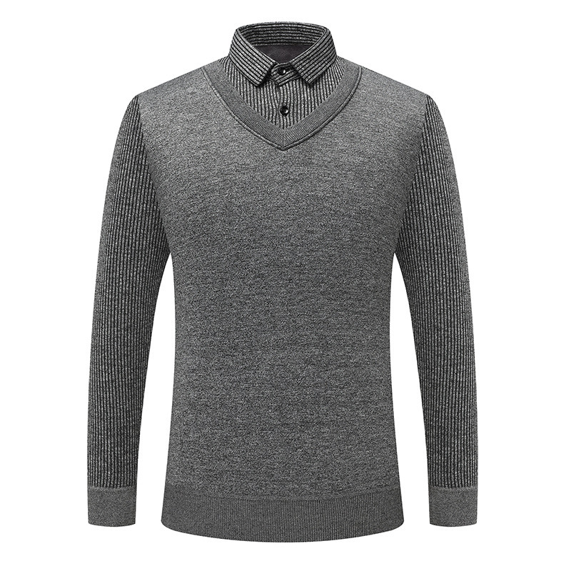 越境秋冬男性ファッションファッション偽二枚ニットシャツ襟コート男性カジュアルインナーセーター