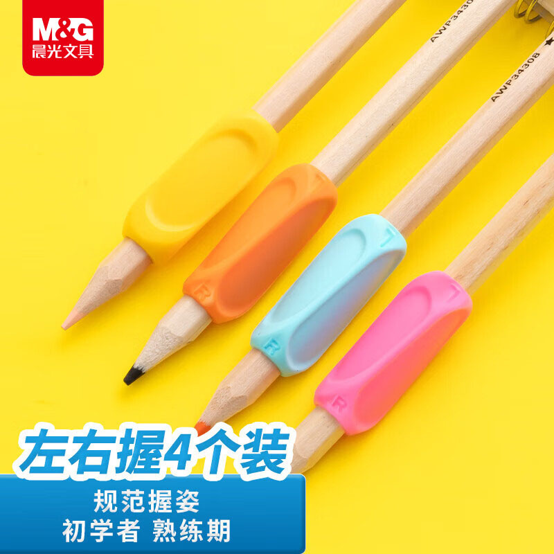 朝の光のペンを握る器の幼稚園の小学生は姿勢の矯正器を握ります。