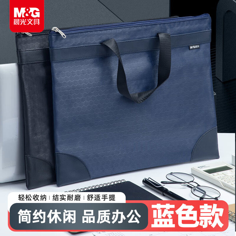 Chenguang A4 ブルーパターンポータブル会議バッグビジネスバッグ大容量ビジネス文書ジッパーバッグ ABBN3047