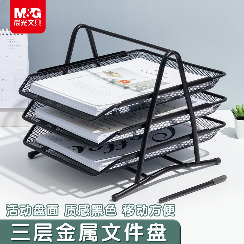 朝光金属三層書類棚多層資料デスクトップ事務整理盤階層収納枠ADM94754