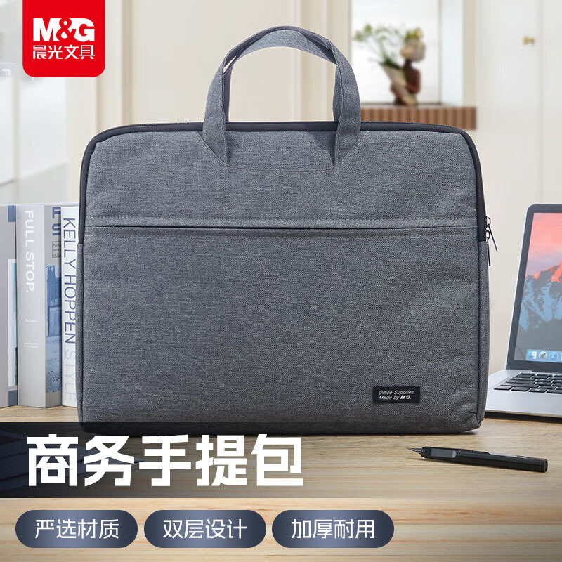 モーニングライトグレー厚みのあるポータブル会議バッグビジネスブリーフケースジッパーバッグビジネスバッグABB93184