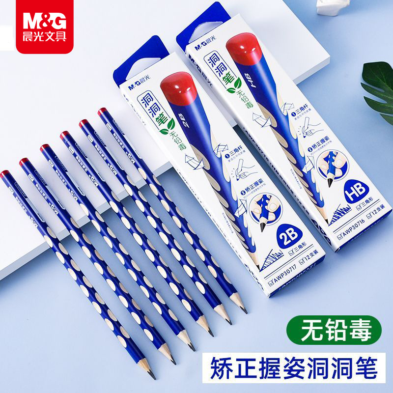 朝光矯正穴鉛筆2BHB学生練習鉛筆児童正姿三角木棒鉛筆AWP30717
