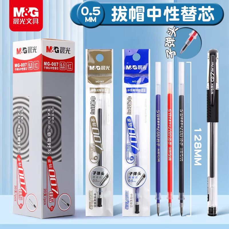朝光金ドリル中性芯黒0.5mm弾丸黒青代替芯水性サインペンMG007