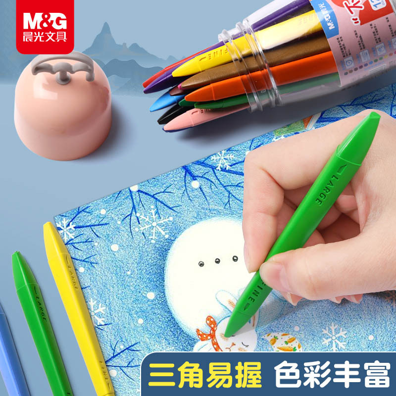 朝の光が汚れていない手の双頭のプラスチックのクレヨンの絵筆の幼児は握りやすくて切れにくいです。