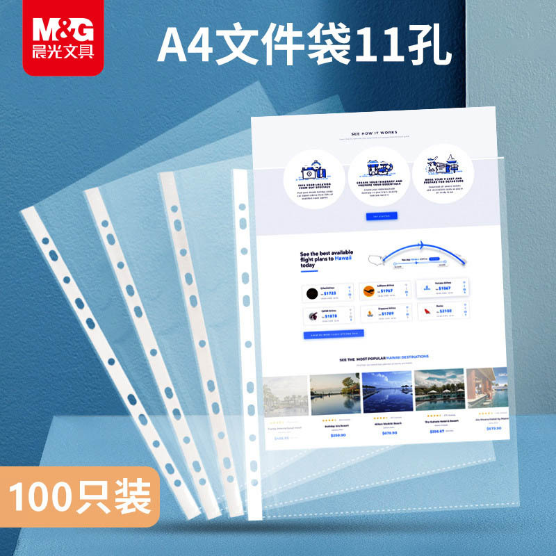 朝光11穴書類袋バインダーpp透明書類管理クリップ防水a 4資料袋保護袋ADM94514