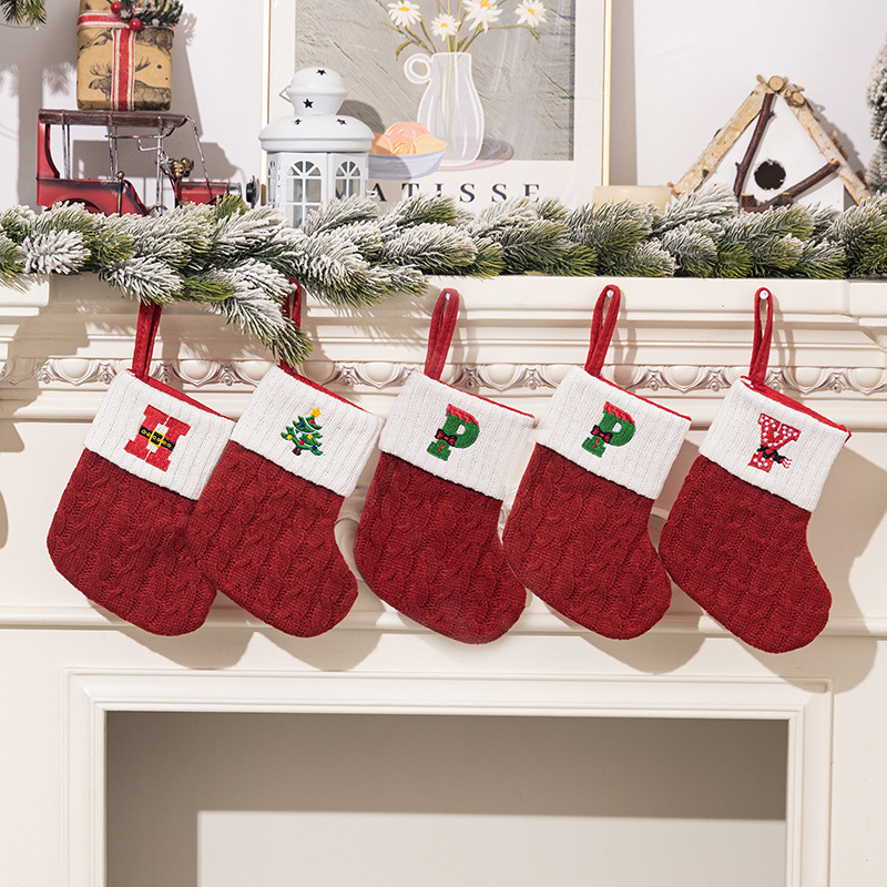 ハウベクリエイティブクリスマス装飾品赤ニットアルファベット刺繍クリスマスソックスカラーDIY名前ギフトソックス