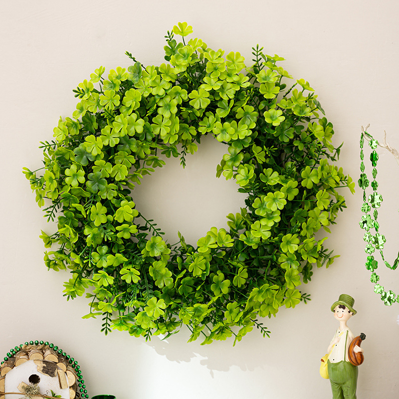 豪貝の新型聖パトリックの日の装飾用品の四つ葉の草の緑色の花輪の緑の葉の節は歓迎して花輪を掛けます。