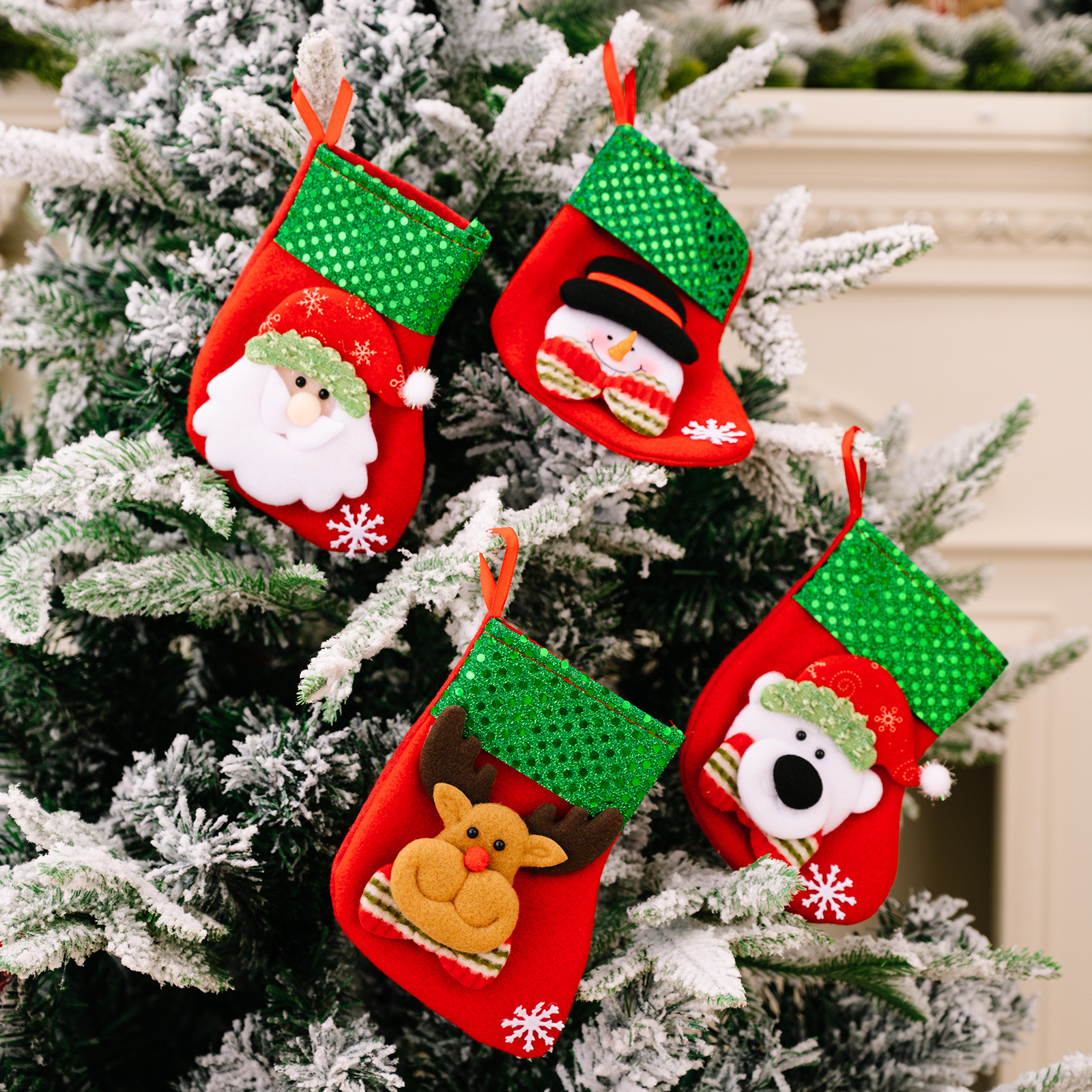 国境を越えた新しいクリスマス装飾品トランペット緑のスパンコール辺雪花漫画クリスマスプレゼント靴下ナイフフォーク靴下