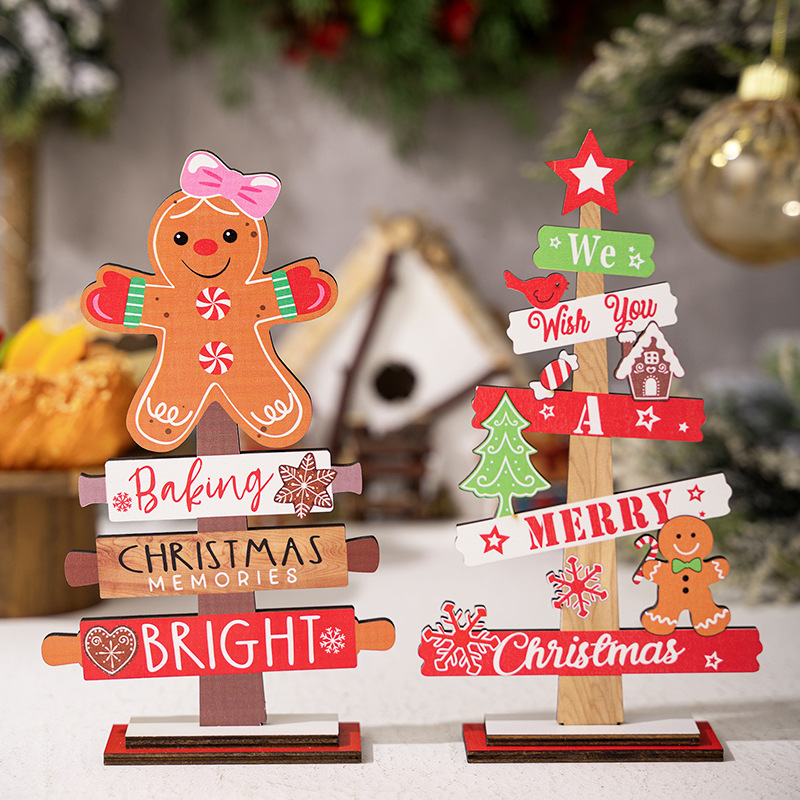 2種類のクリエイティブクリスマス装飾品クリスマス姜パイ人木製装飾クリスマスツリー木製アルファベットデスクトップ装飾