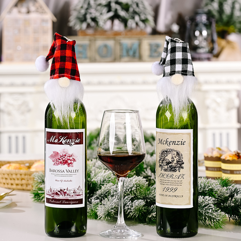 越境新品クリスマス装飾クリスマス赤黒格子帽子ボトルセットクリスマスワインボトル装飾祝日装飾