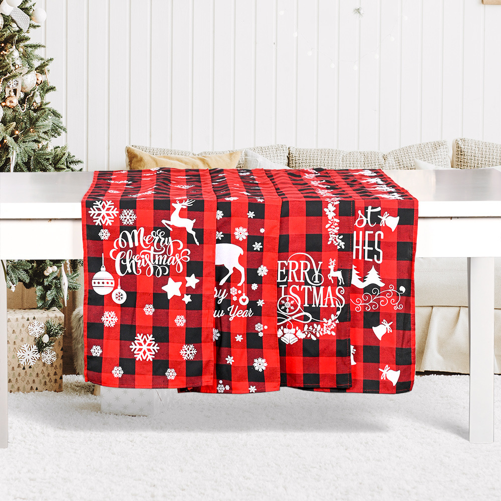 国境を越えた新製品クリスマス装飾クリスマス赤黒格子プリントテーブル旗クリスマステーブル祝日家庭配置