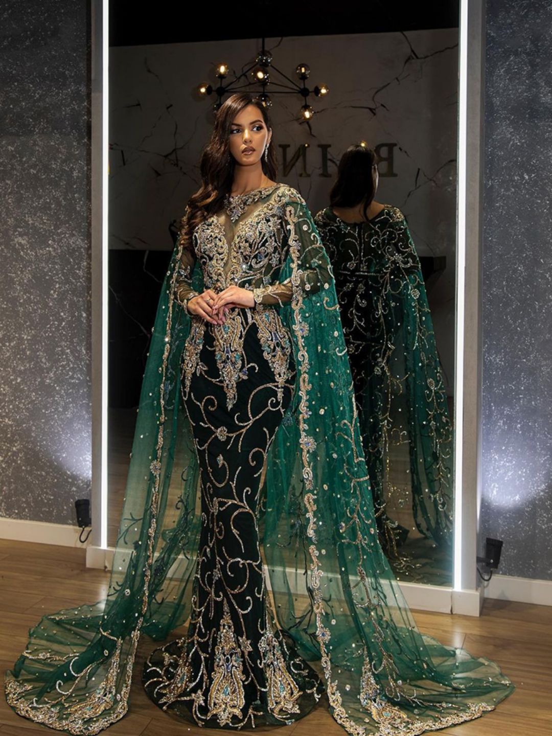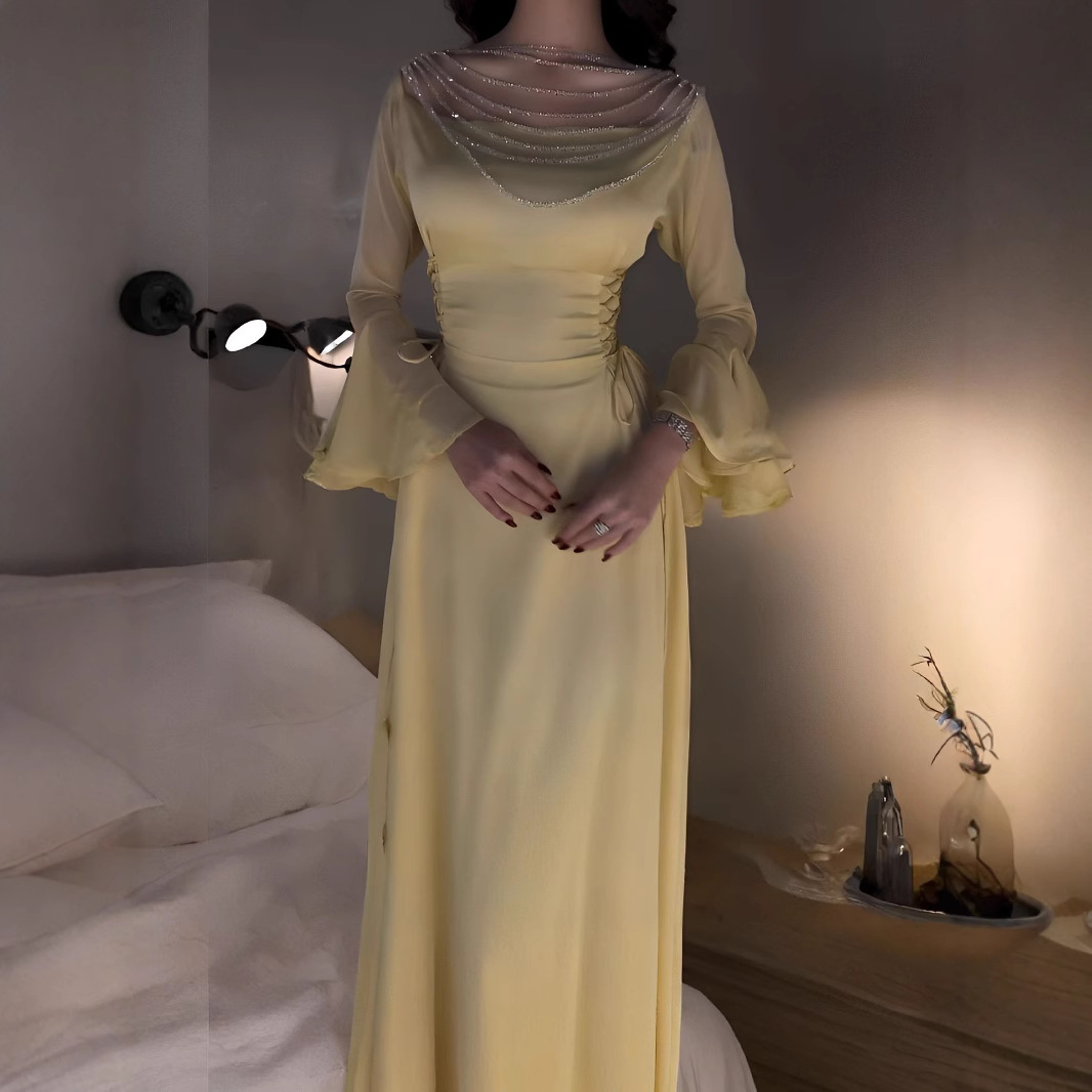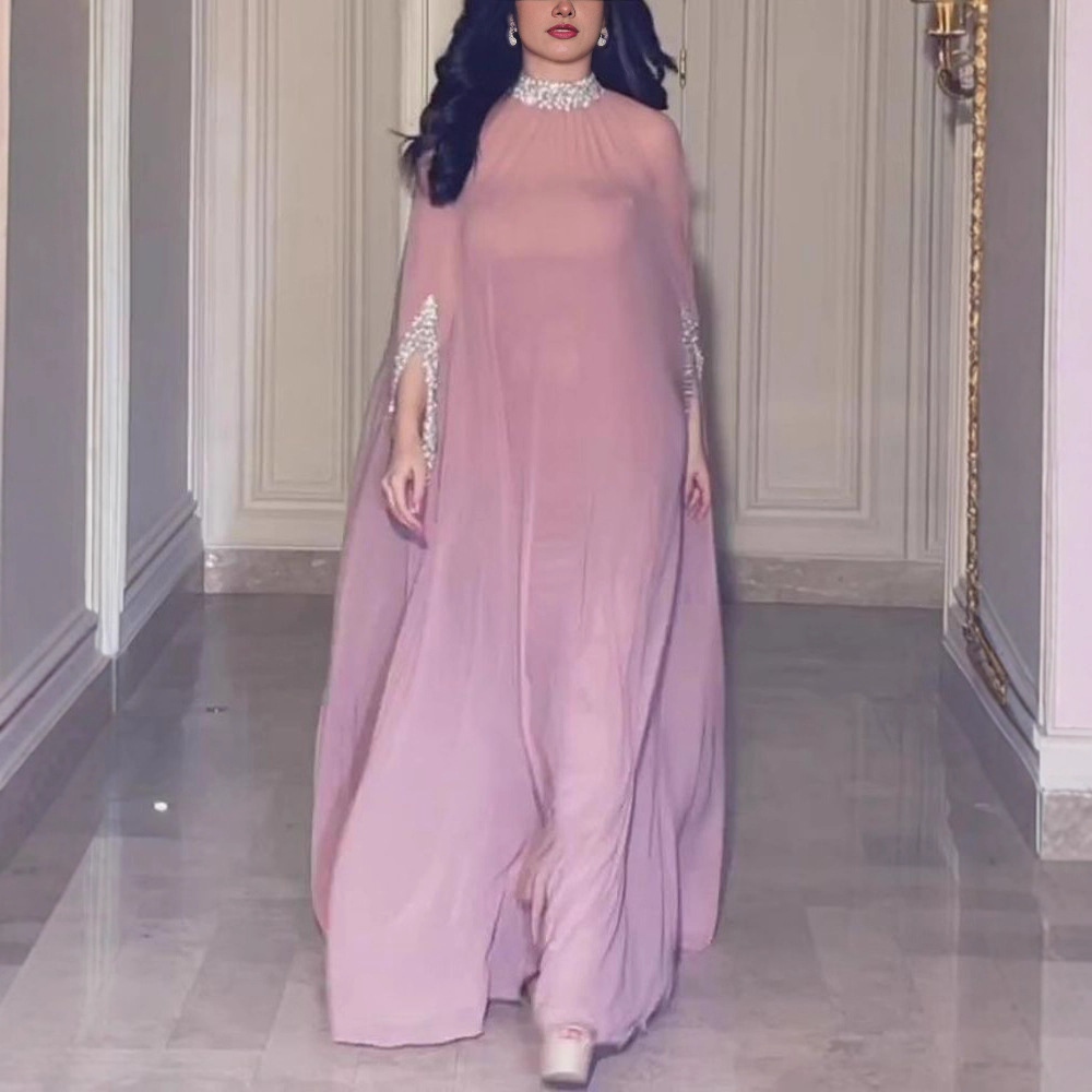 2023春夏新作欧米越境中東気質セクシーマントビーズシフォンパーティードレス2点セット