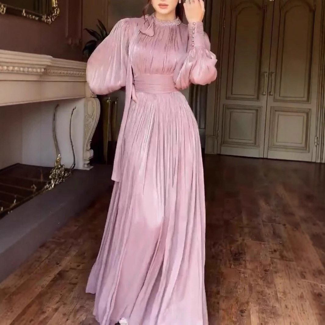 2024秋冬の新型の越境対外貿易の婦人服の欧米の独立駅のアマゾンの中東のベルベットのお尻は袖のドレスをはおっています。