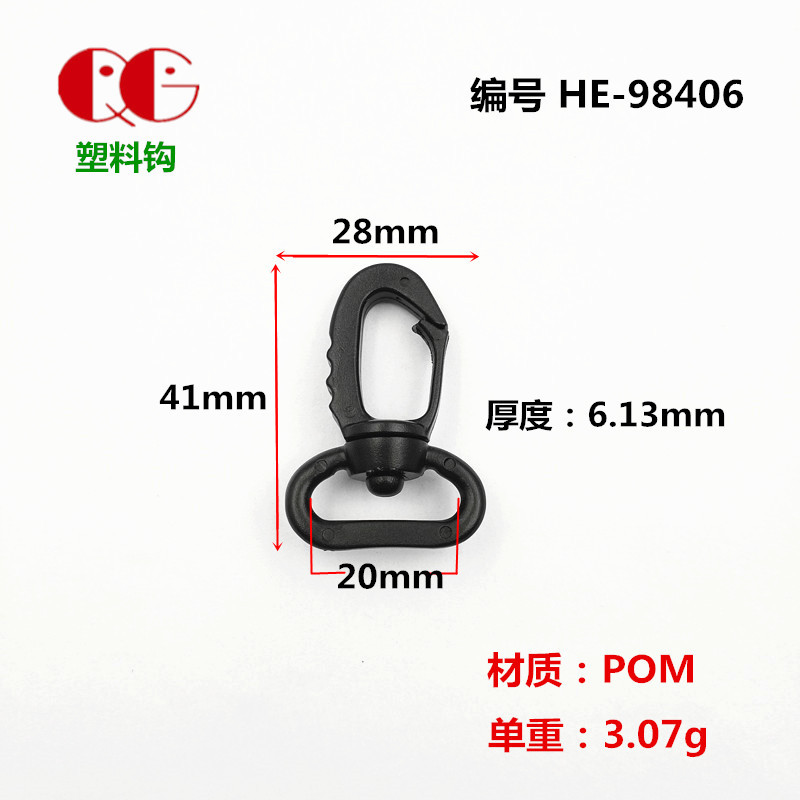 バッグフック回転フックフック18mmプラスチックフック黒色スポット犬バックルフック