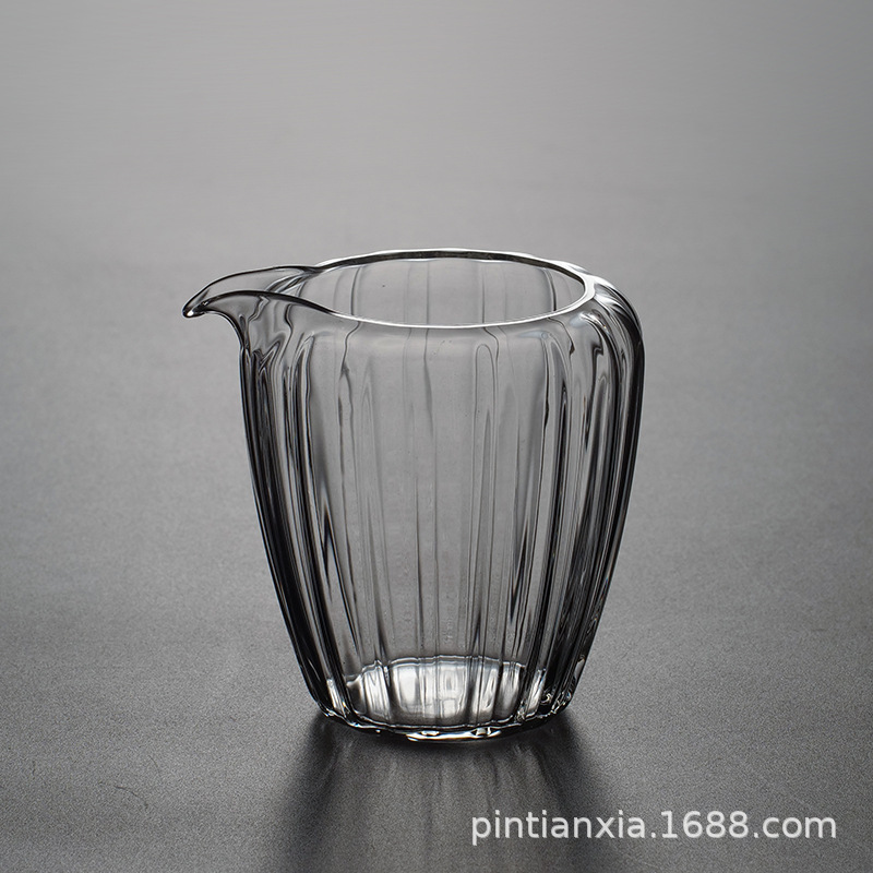 日本式の公道の杯の耐熱のガラスのハンマーの紋様の厚い分茶器の茶の海の長い口の公の杯の家庭用の工夫の茶器
