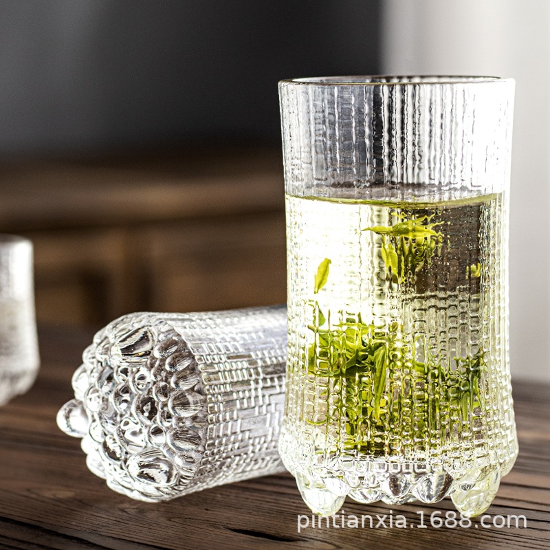 日本式ガラスコップ耐熱透明ハンマーカップジュースカップ飲料カップオフィス用個人コップ