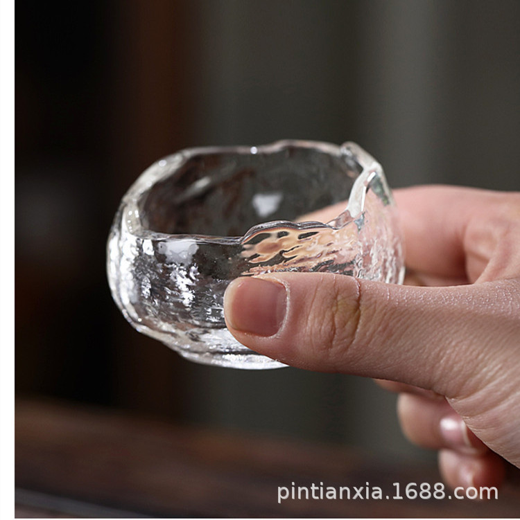 日本式の小さいティーカップの耐熱ガラスの透明な厚いハンマーの紋様のお茶の杯の個人の1杯の主人の杯の工夫の茶器