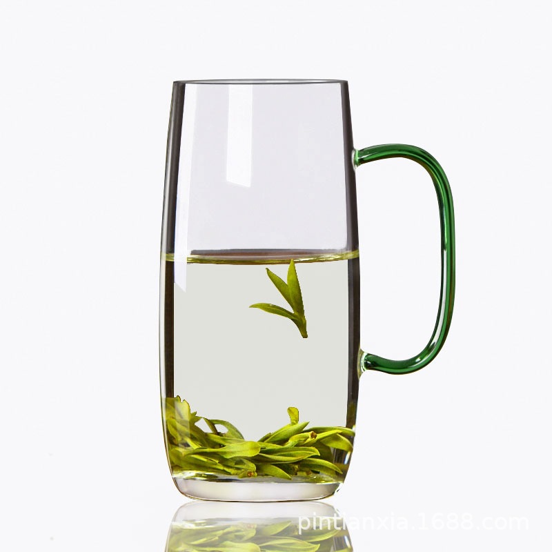 日本式ガラス緑茶カップ耐熱透明ハンドル付きティーカップオフィス家庭用コップジュース飲料カップ