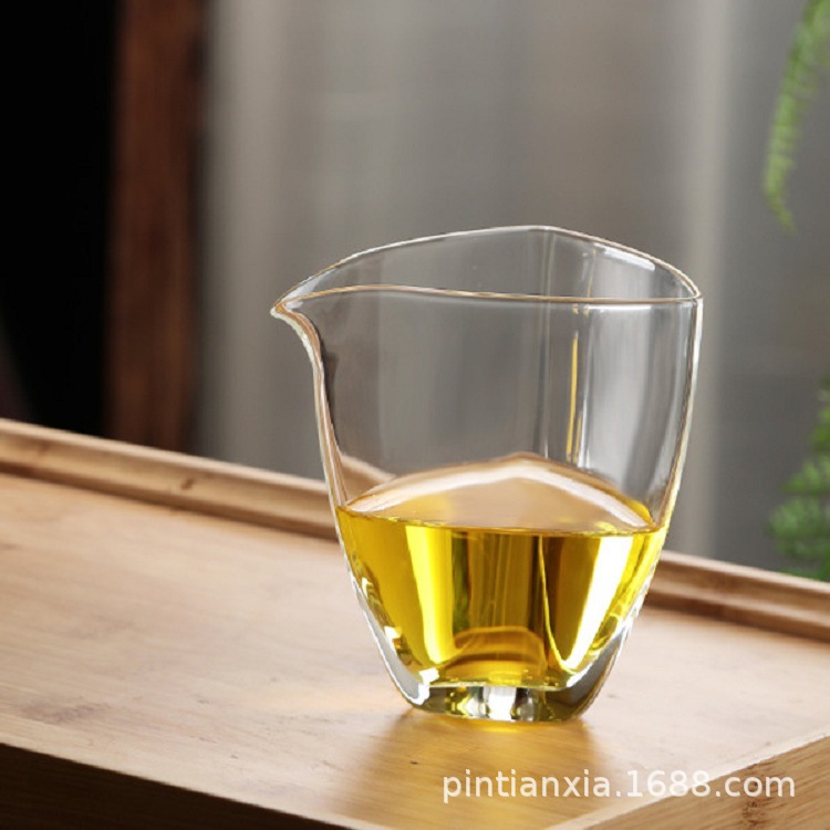 日本式の公道の杯の耐熱ガラスの透明な分茶器の三角形の均一な杯のお茶の海の家庭の工夫の茶器の部品