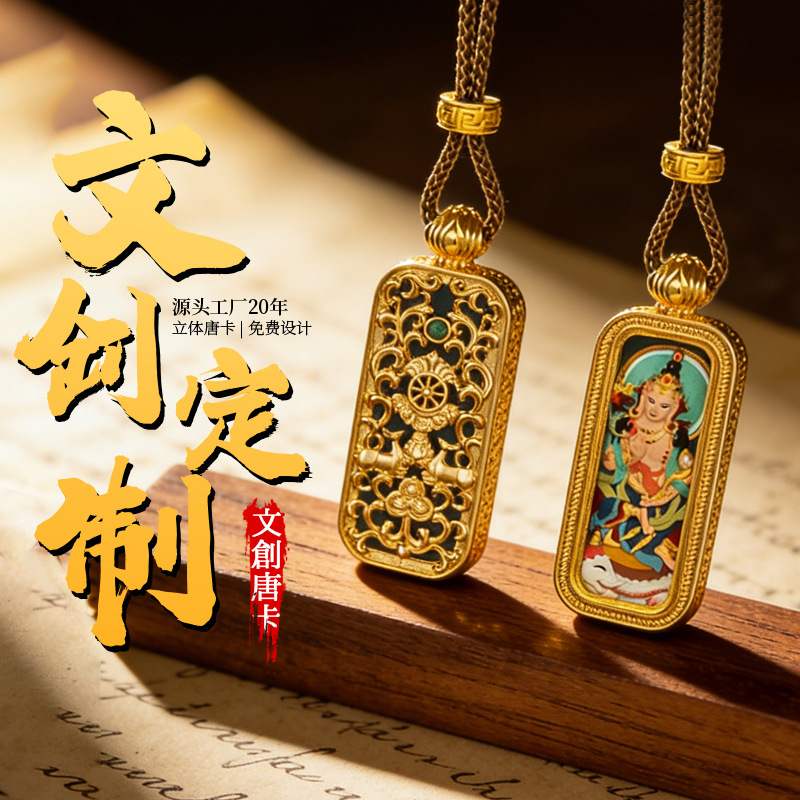 楞严経ペンダント 文殊菩薩 黄財 緑度母模様 固定図面対応 チタン鋼ペンダント ジュエリー ハンギングペンダント