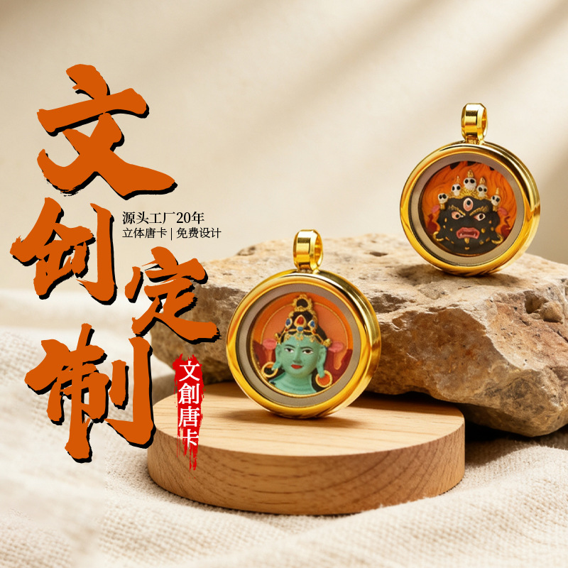 手描きタンカペンダントチベットザキラム黄彩五葉手作り文化創造薬師五葉擦りタンカペンダント