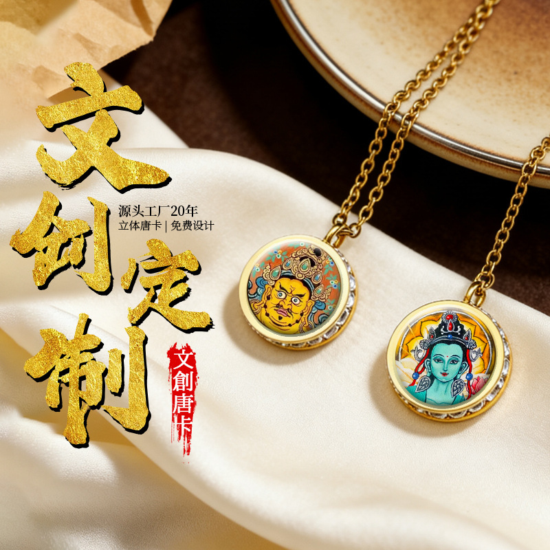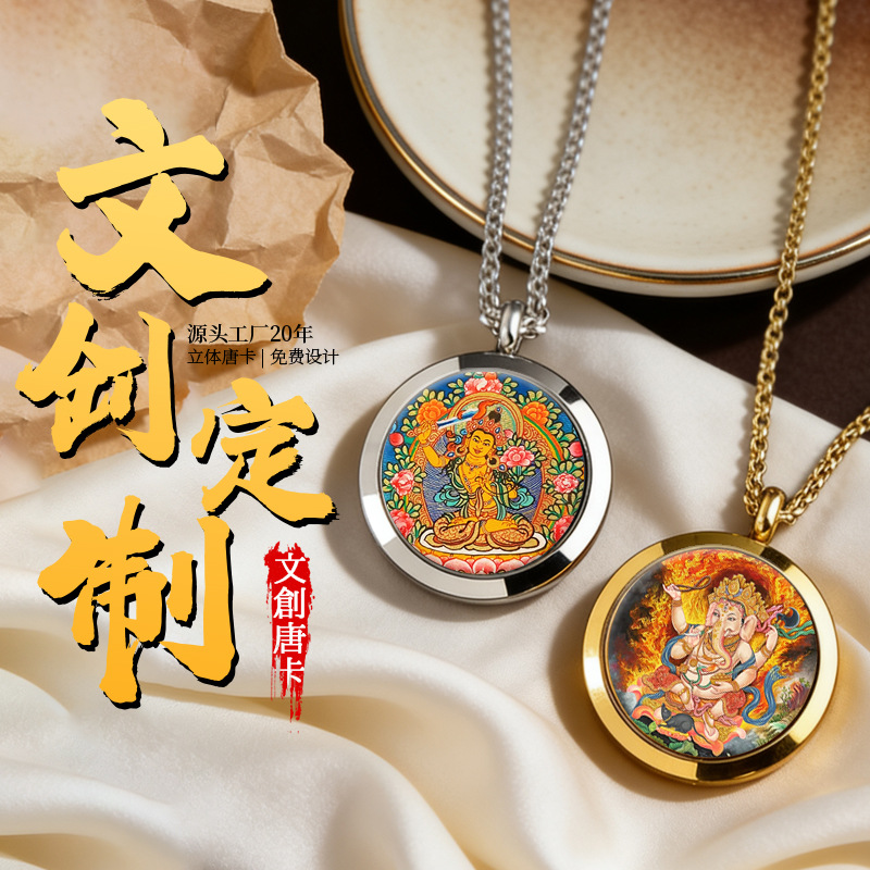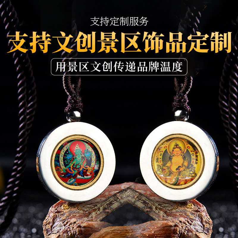 新無形文化遺産ミニ唐卡ペンダントチタン鋼小円形ペンダント鎖骨チェーン女性用ネックレスジュエリー写真入りペンダント製作可能