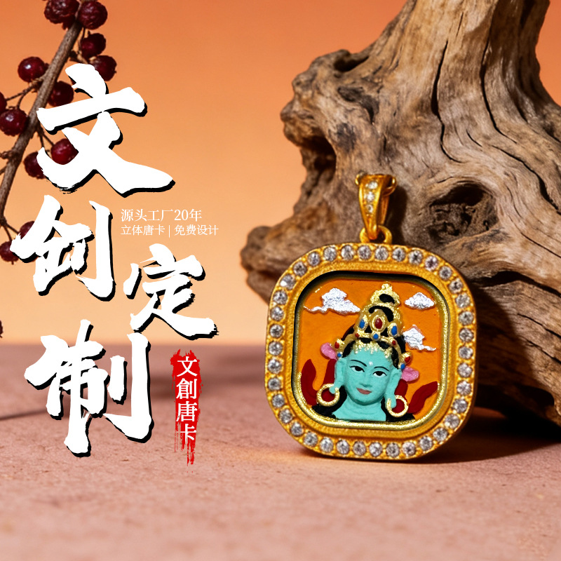 新無形文化遺産タンカペンダント、楞严経空心ペンダント、精緻なガウボックス、黄金財宝、緑度母、文殊菩薩、男女兼用ネックレス