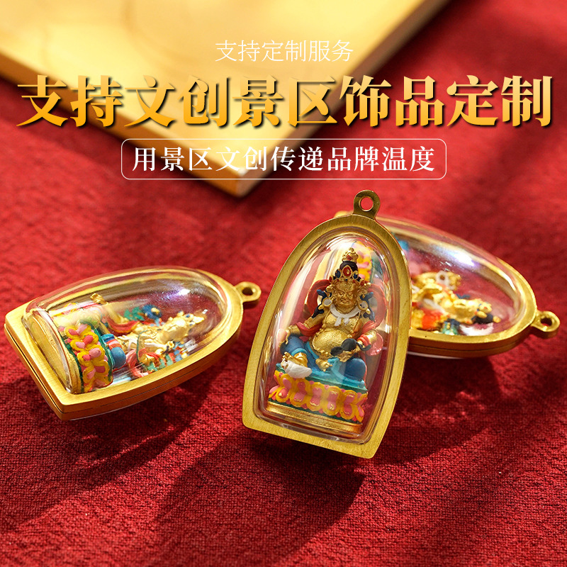 新しい無形文化遺産タンカペンダント、ミニザキラムグリーンタラ、イエローカイロット、開閉式チタン鋼ガウボックスペンダント(男女兼用)