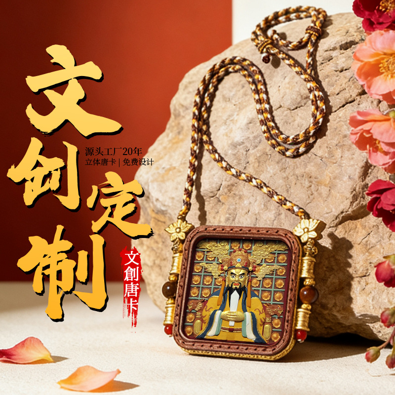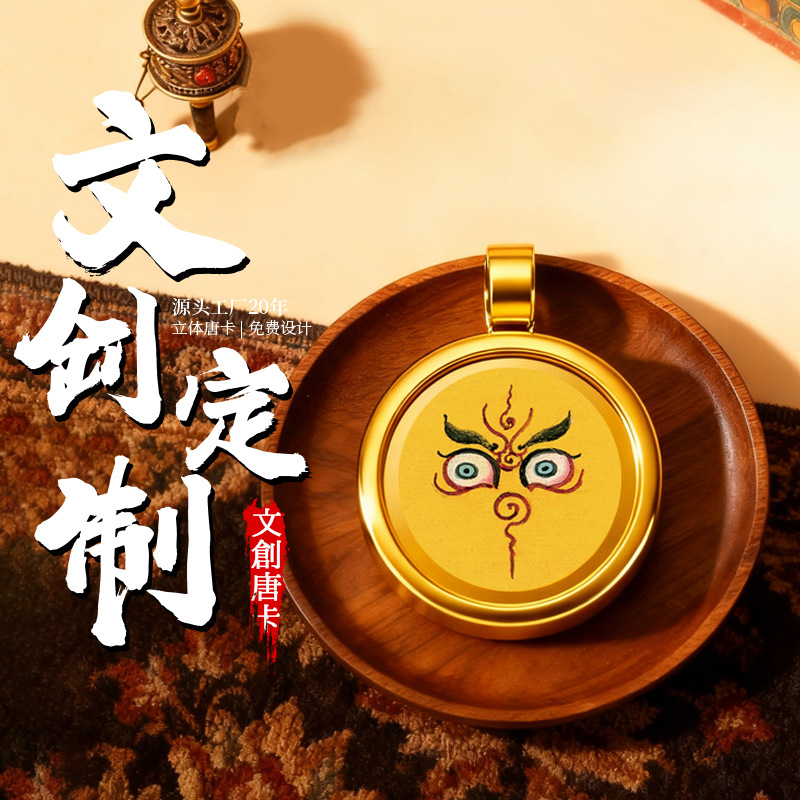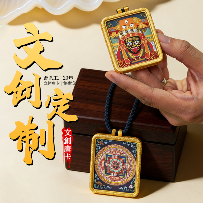 新非遺千古意チベット手作り唐カード手描き五爺ザキラム国潮男女ペンダント皮彫刻唐カード
