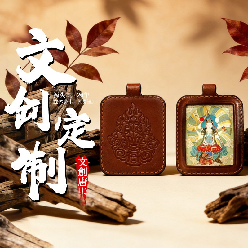 新非遺品唐卡蔵式包殻手作り牛形皮殻携帯ペンダント金剛杵ガウ箱皮カバー