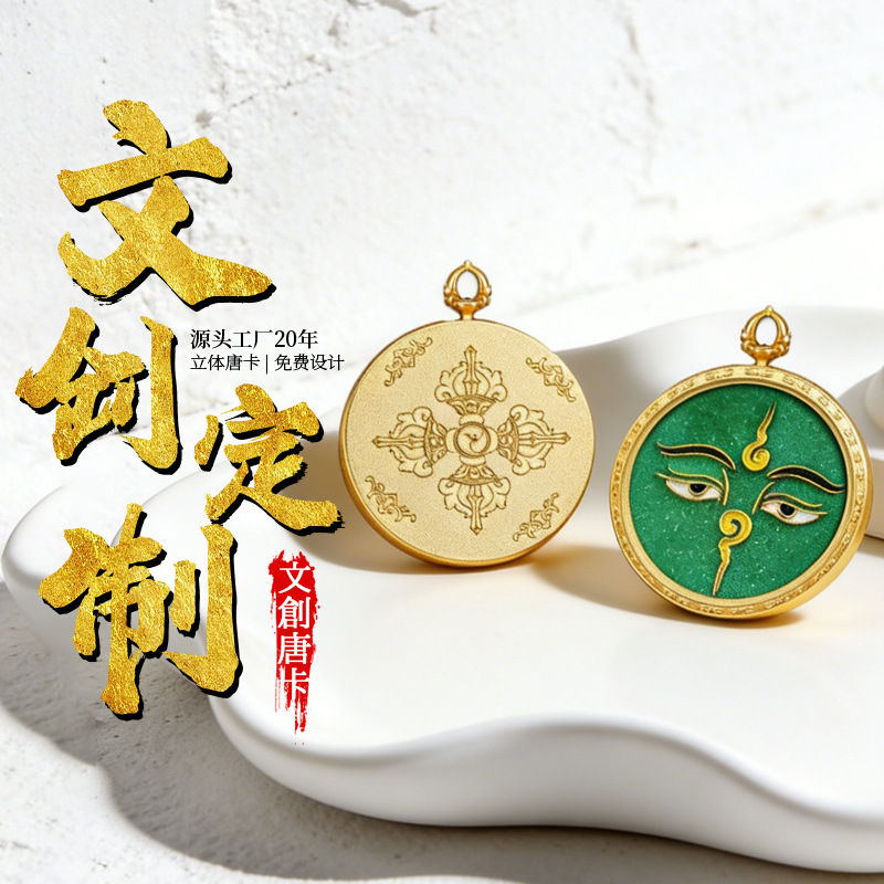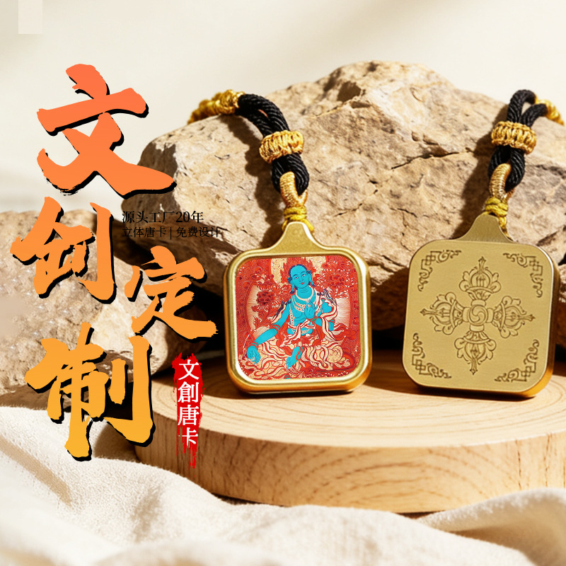 新非遺蔵風卸売り国潮唐カード緑度母ネックレスアクセサリー男女交換パターン唐カードペンダントネックレス