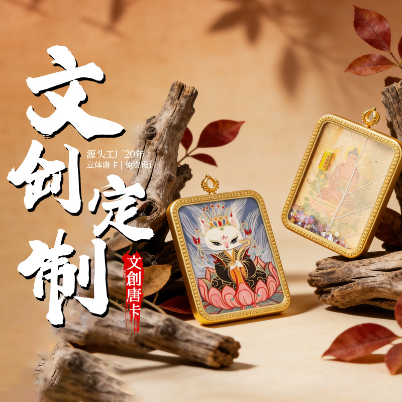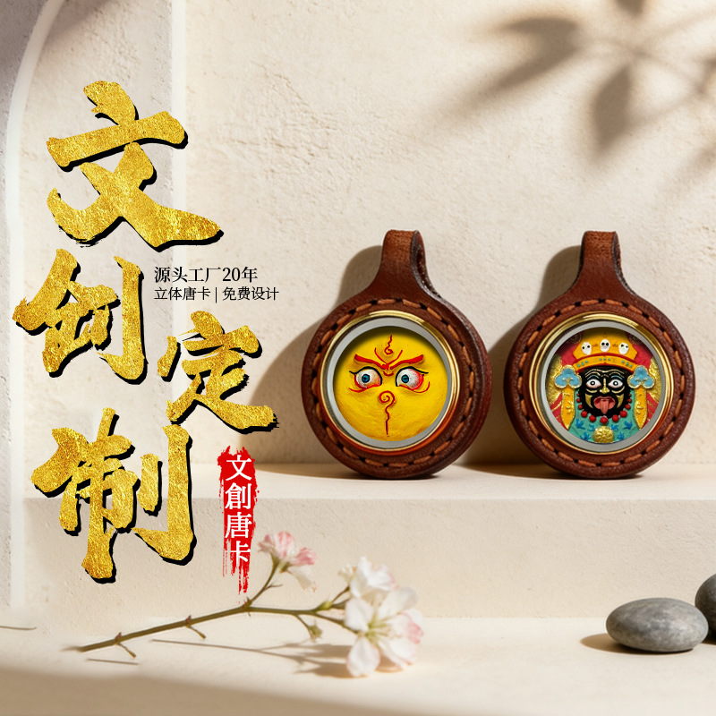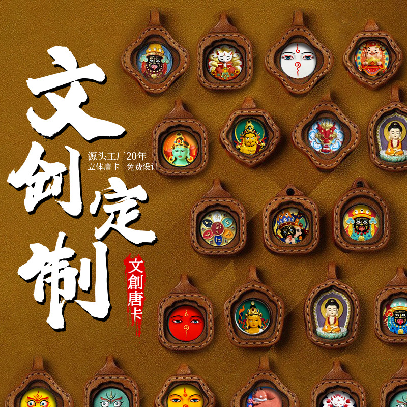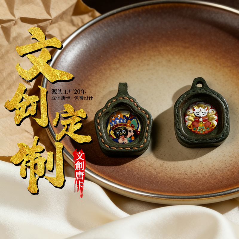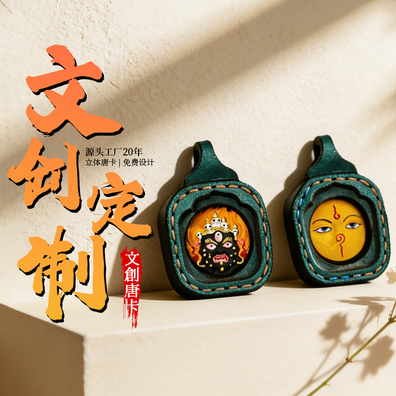 新非遺品3d立体手描きザキラム黄財五爺唐カード手描きペンダント拭き皮質ガウ箱