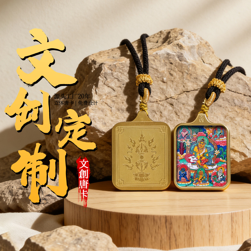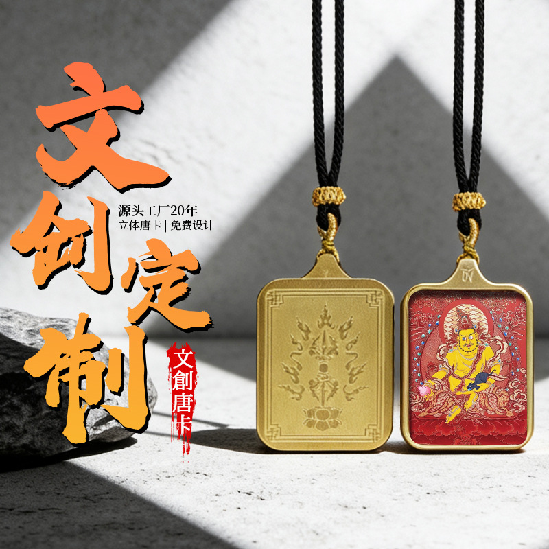 新非遺留ザキラム唐カードペンダント五爺手描き黄財神小唐カードチタン鋼アクセサリーネックレス男女