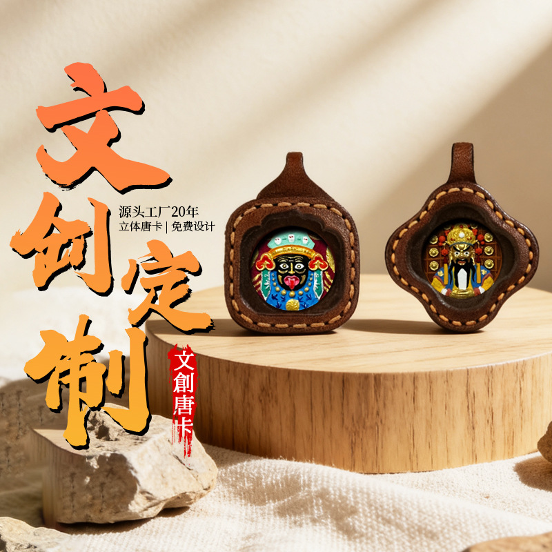 新非遺品3d立体手描きの上に色を付けた手作りの唐カードのカツオの箱は皮の殻のチベット式の皮のカバーのペンダントを拭きます。