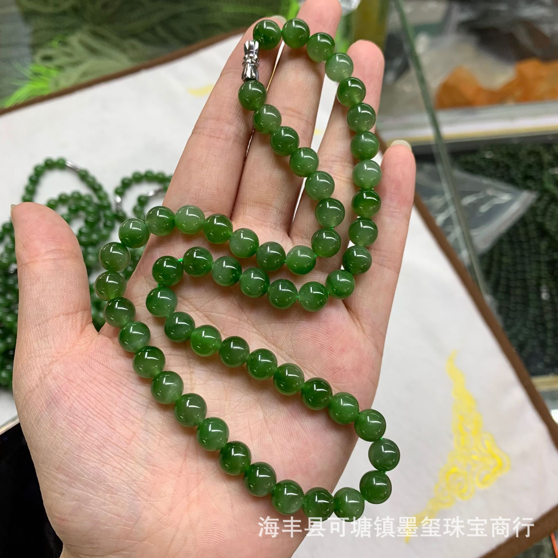ロシア材料和田碧玉8mm母鎖微猫眼無黒点ホウレンソウ緑ネックレスdiyボールアクセサリー卸売り工場