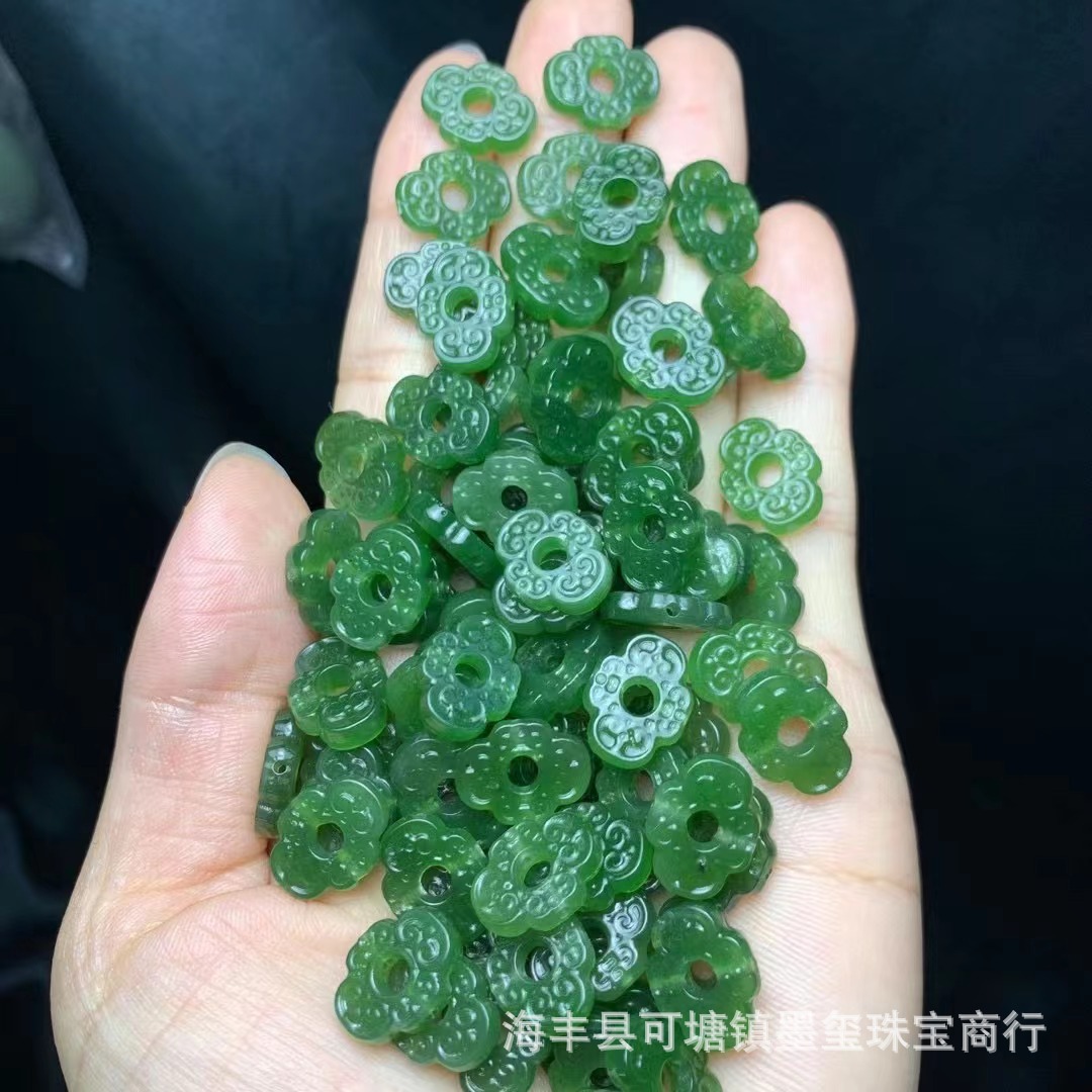 和田碧玉背雲部品直通孔陽緑微黒点diyアクセサリー小提溜手串ネックレス卸売り工場