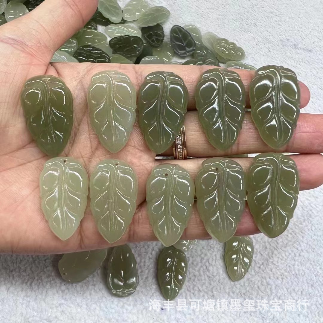 和田玉青海材料葉ペンダントdiy金樹玉葉仏珠ペンダント葉アクセサリー玉部品卸売り