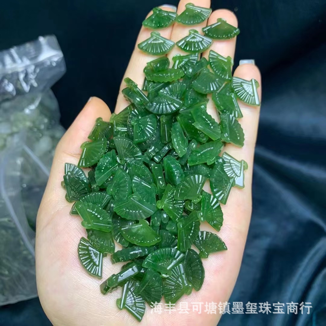 和田碧玉扇子ペンダントほうれん草緑微黒点diy葉葉アクセサリー手串卸売り工場
