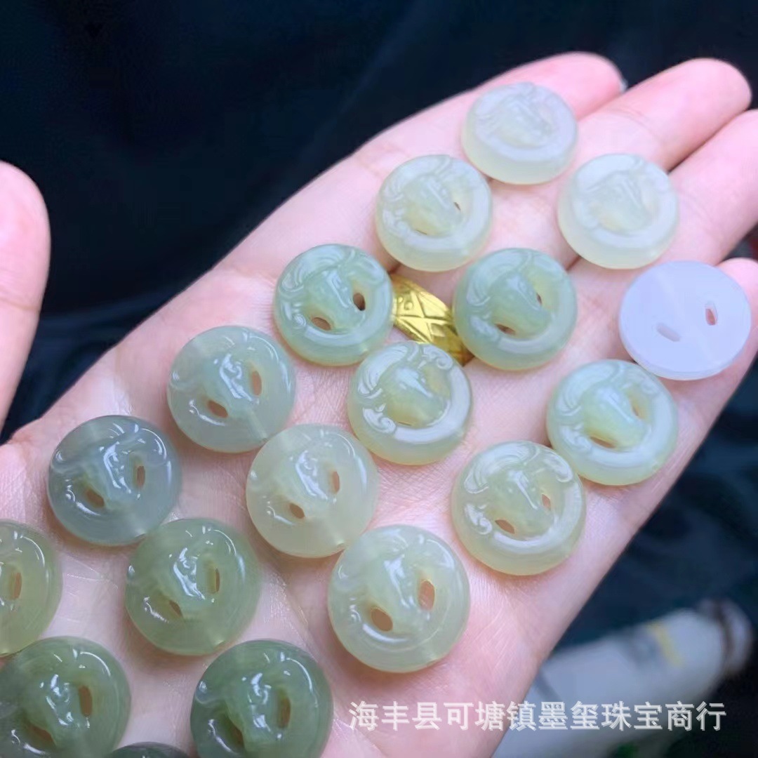 和田玉青海材料牛頭部品diy直通穴アクセサリーペンダント玉ブレスレット散珠アクセサリー卸売り工場