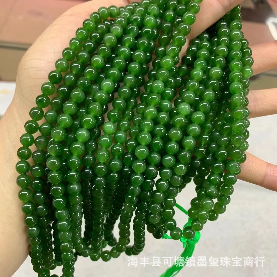 和田碧玉8mm半穴玉ほうれん草緑無黒点diyボール散珠部品手串ネックレスアクセサリー卸売り